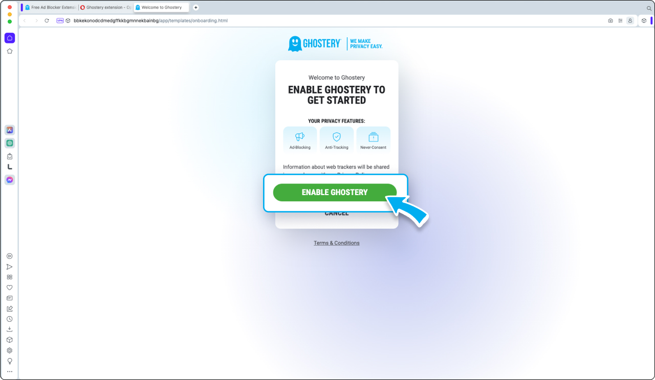 In the new tab that opens, select Enable Ghostery.