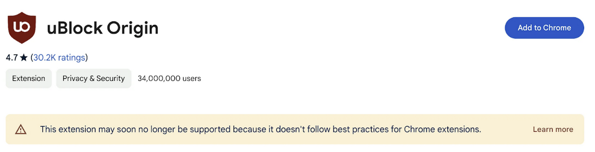 - Learn why uBlock Origin is no longer supported on Chrome, and what this means for your ad-blocking and privacy experience.
