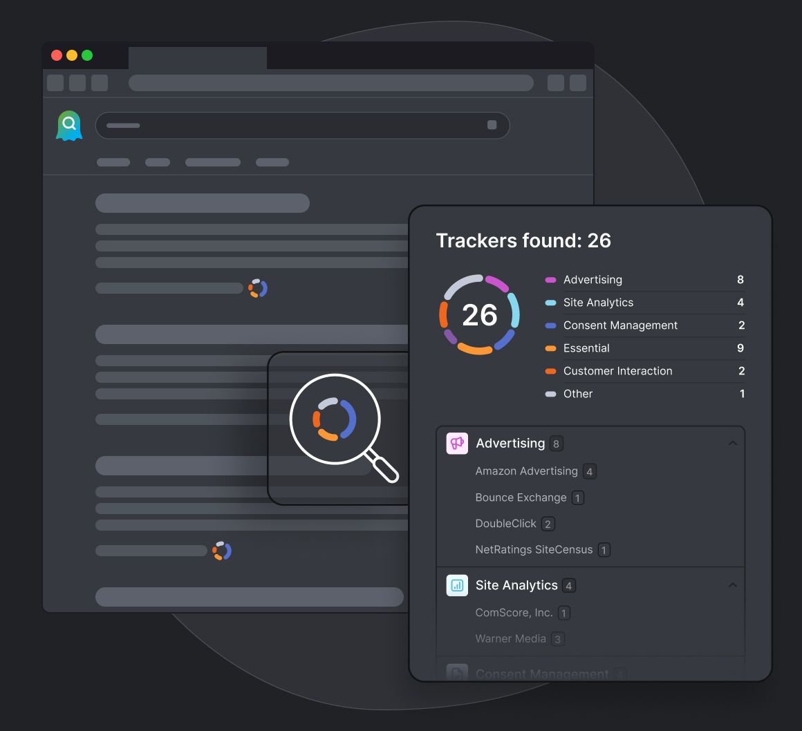 . This unique feature in a privacy search engine shows you the trackers that want to collect your data and provides you with real-time insights on them.
